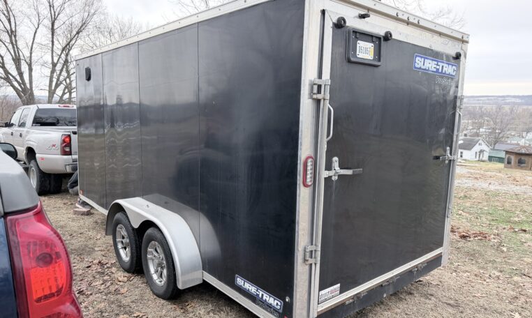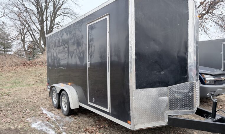 Enclosed trailer. Pulls great. Had some front and rear damage. Been repaired and everything works. 7′ x 16′.