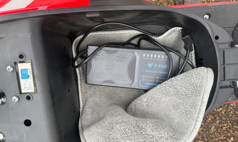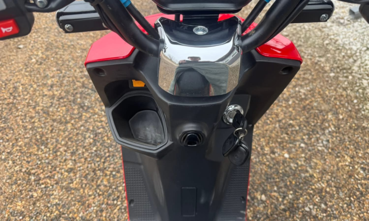 Goes down the road great! Clean title, no issues. Has cargo hold under seat and front has a cup holder and USB charging port. Fully electric, website says it has up to 60 mile range. Top speed around 35+, didn’t want to go much faster right now on the sandy roads to test!