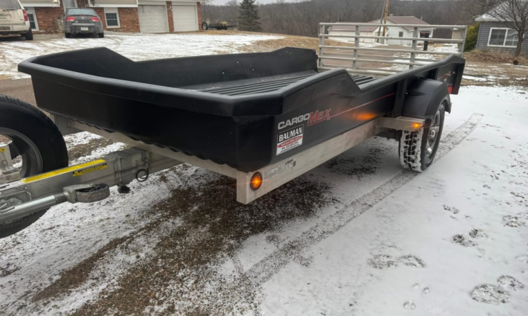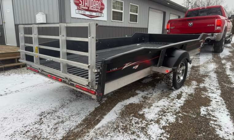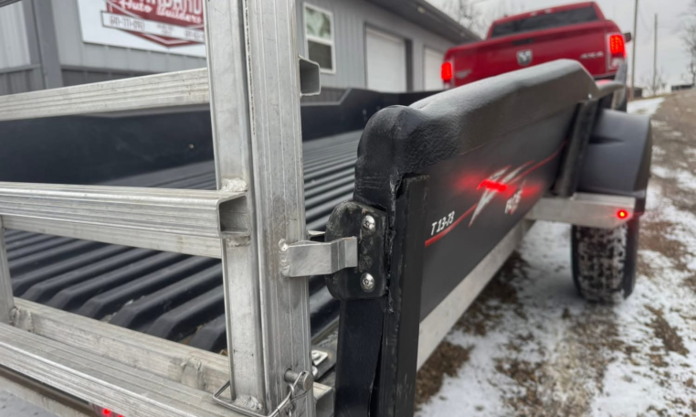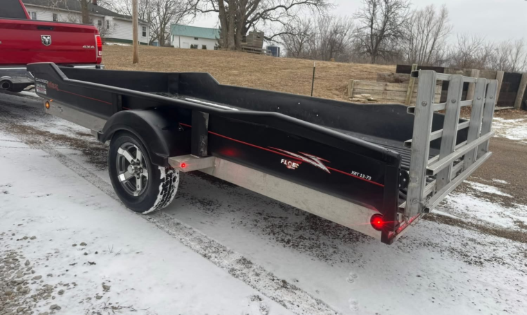 Tilt 72inchx13ft trailer. 3500lb axle, aluminum frame, tilts, LED lights, spare, and double flip gate. Did have some damage on right rear but gate works. Has Iowa registration.